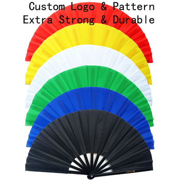 Ventilador de mano con logotipo personalizado Kongfu ventilador de ejercicio personalizado propio logotipo madera bambú plástico tela de mano seda danza rendimiento ventilador de mano